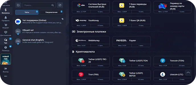 The technological infrastructure of the platform is built on modern solutions that ensure fast order execution and stable system operation even under high load. The servers are located in several data centers, which guarantees the smooth operation of the platform.